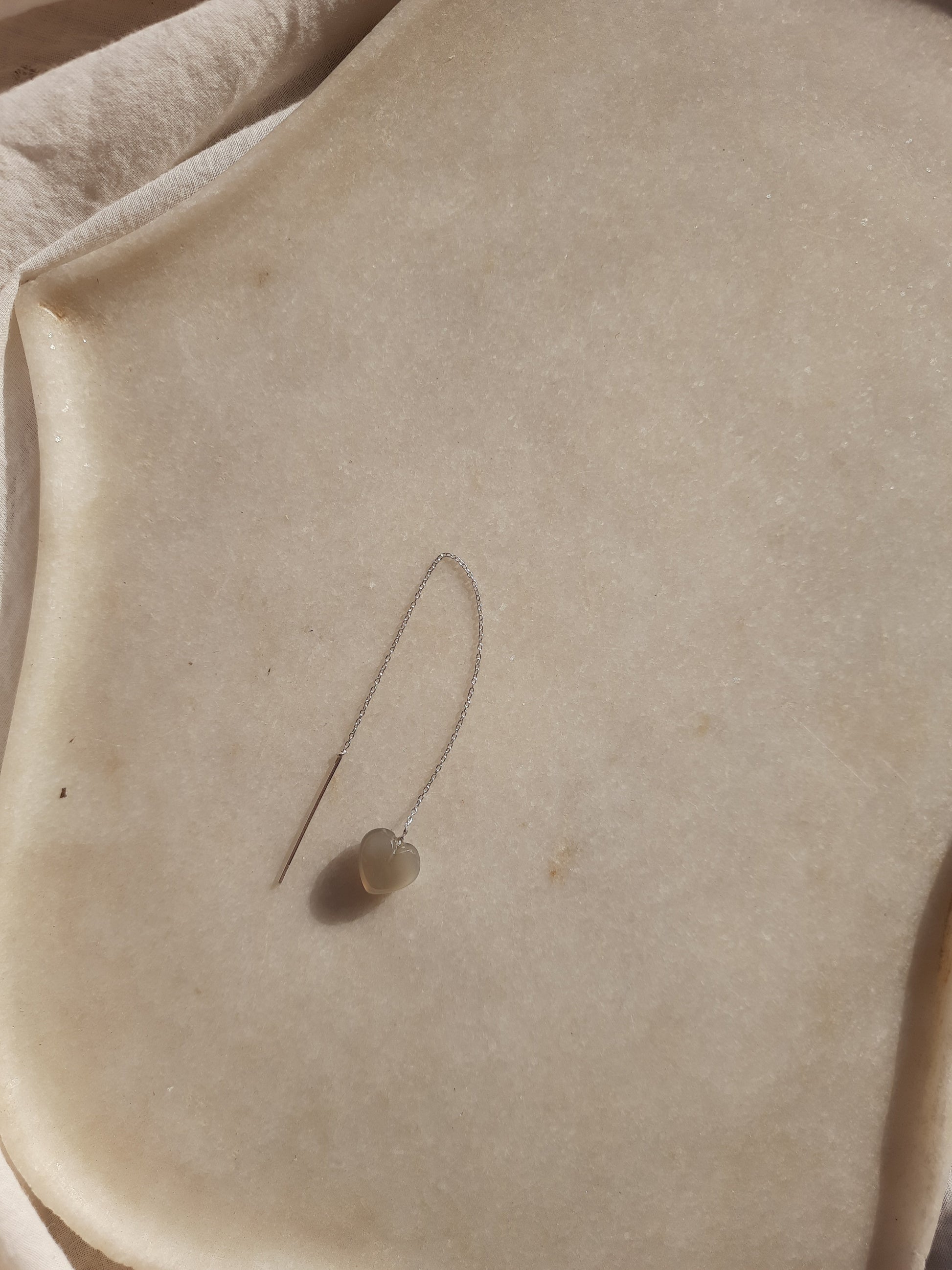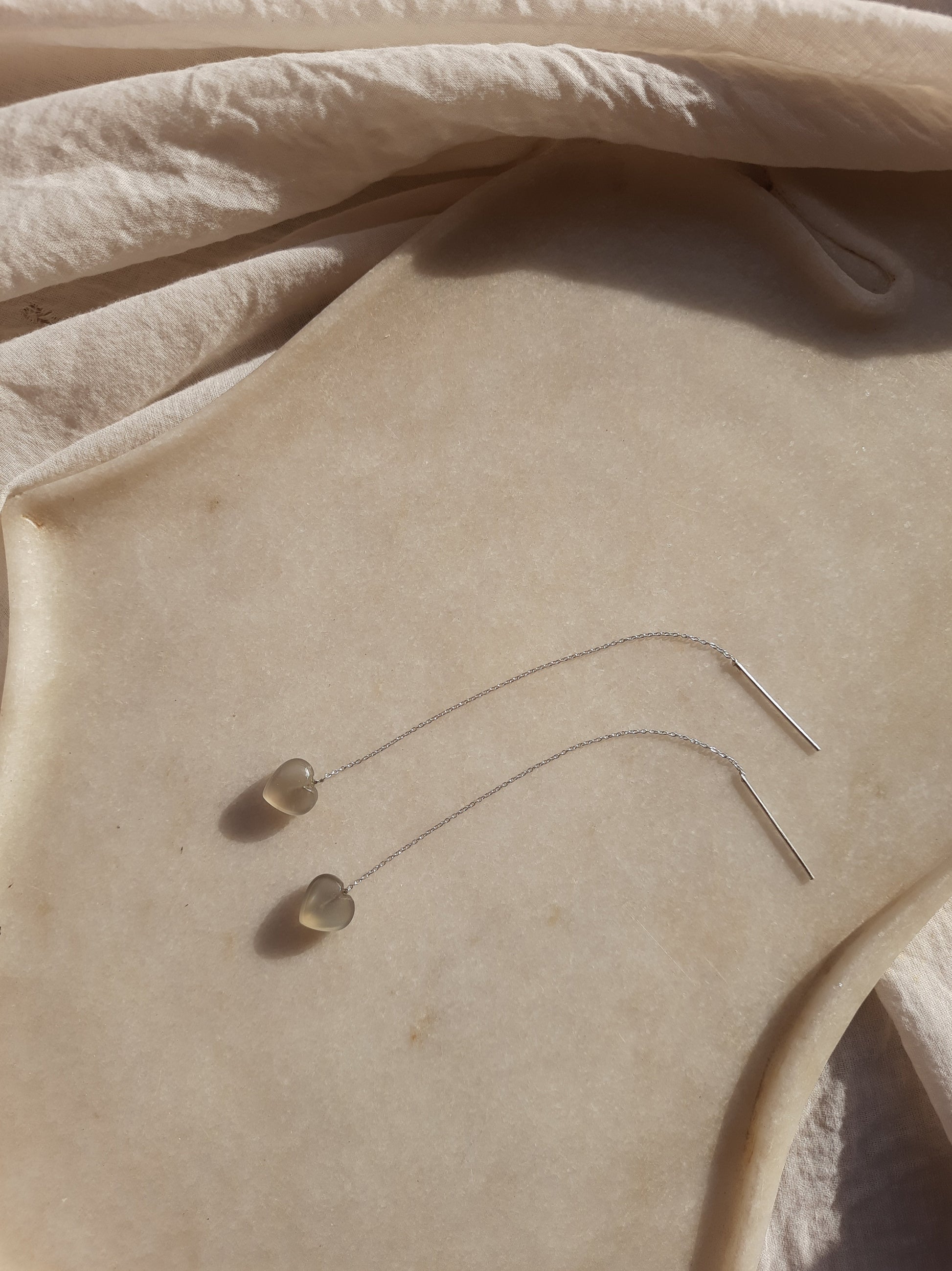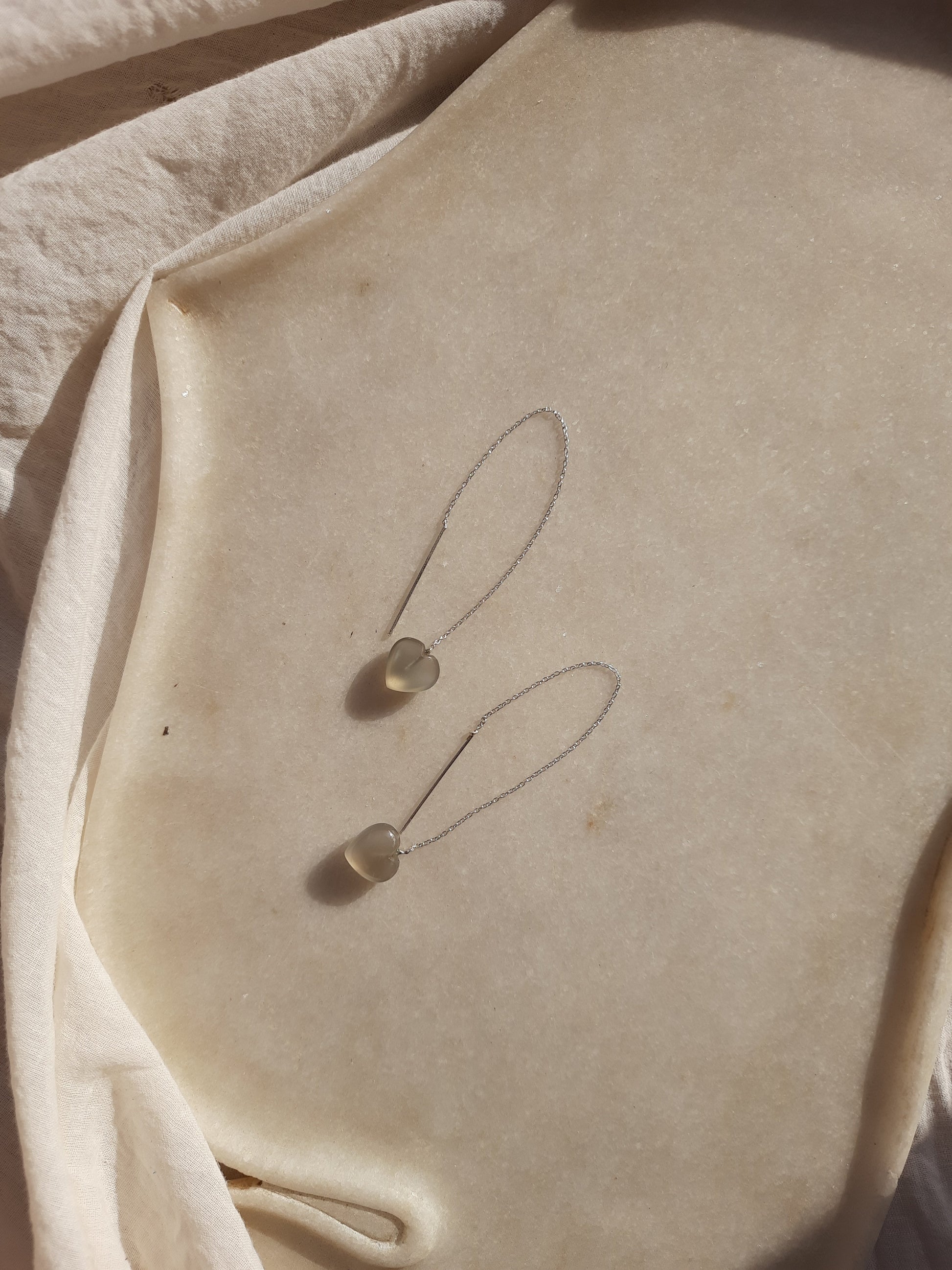 Grey Moonstone Threader Earrings with Sterling Silver/14kt Gold Plated on Brass chain.