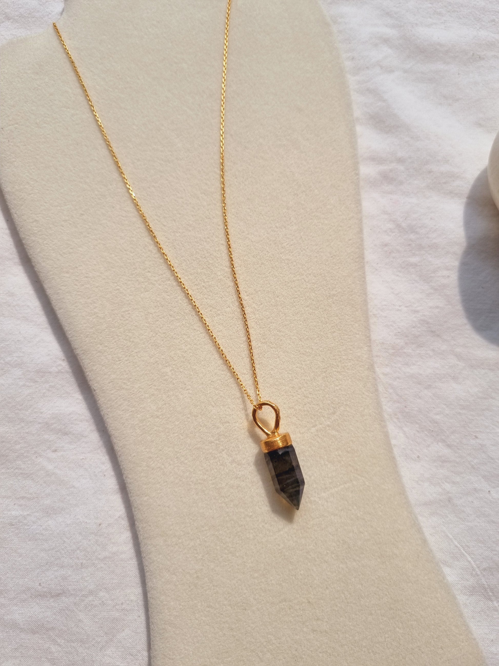 Labradorite arrow Pendant with 14kt Gold Plated on Brass chain.