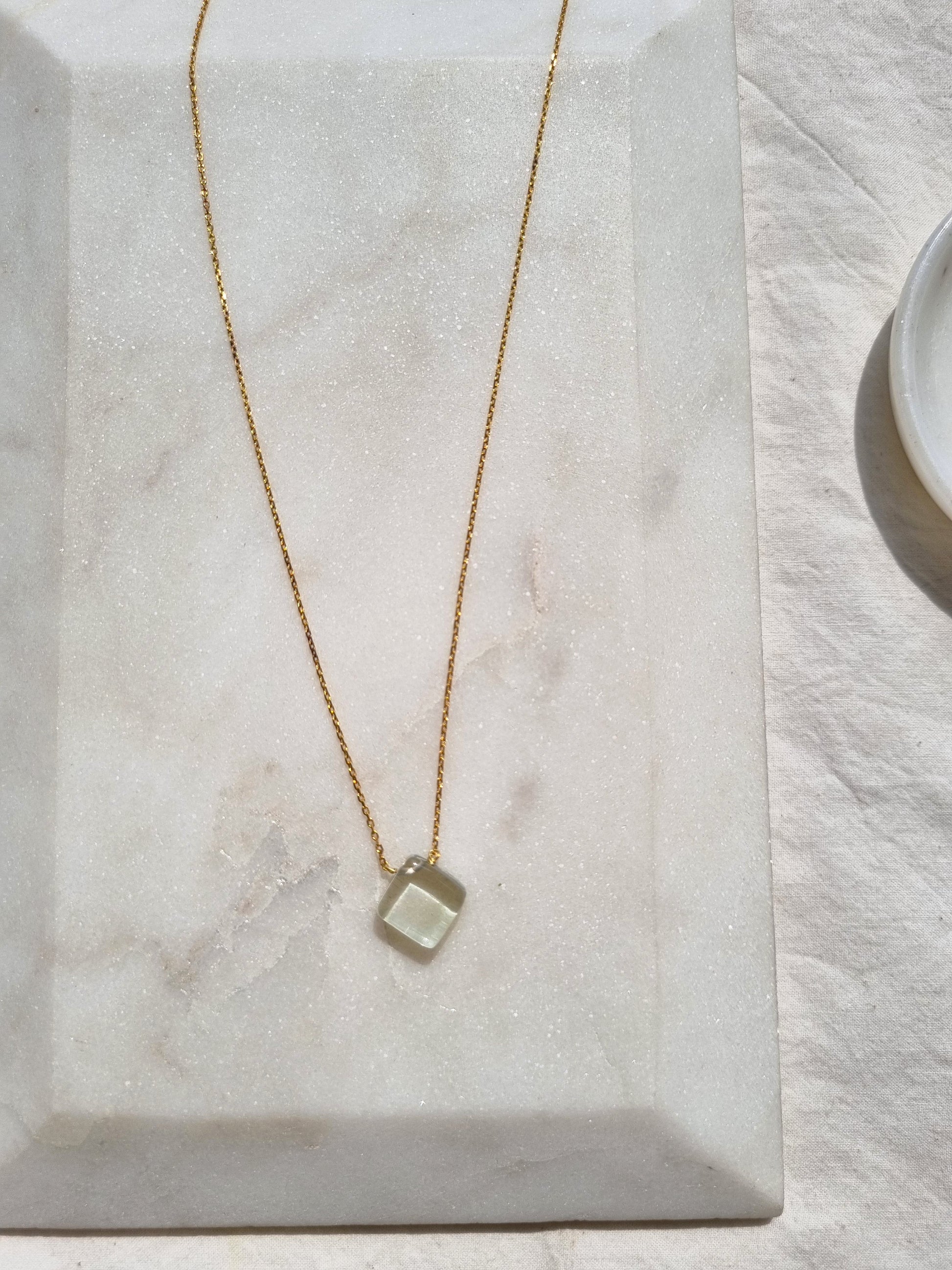 Green Amethyst Kite Pendant with 14kt Gold Plated on Brass/Sterling Silver chain.