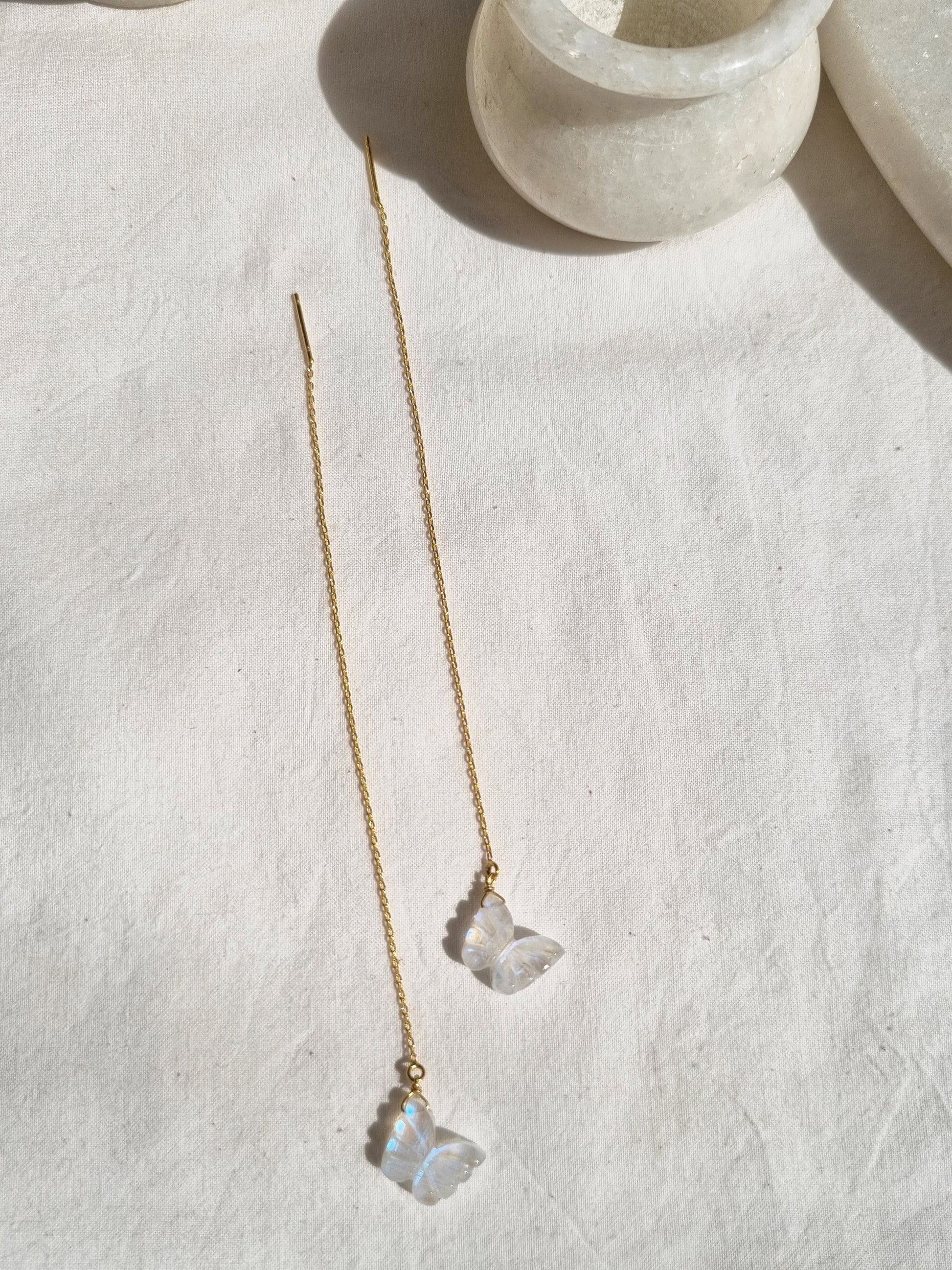 avahi - Rainbow Moonstone Butterfly Threader Earrings