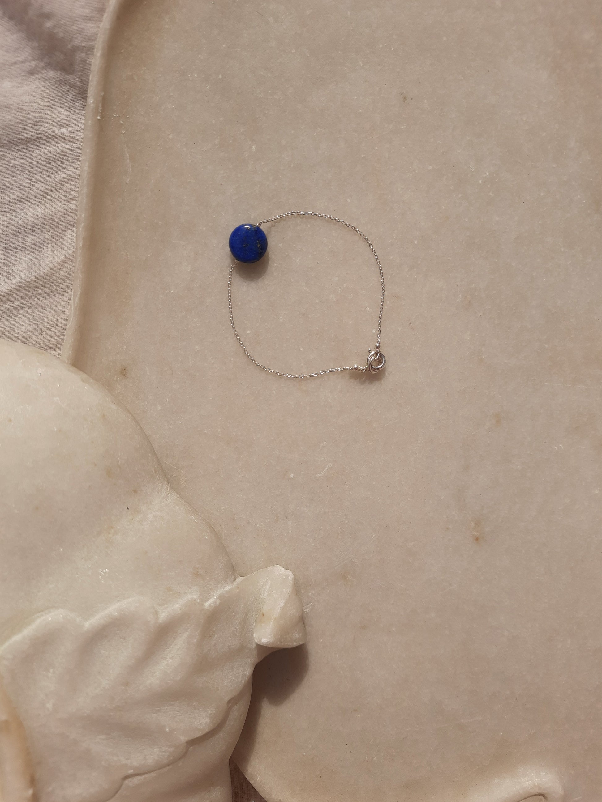 Lapis Lazuli round charm Bracelet with 14kt Gold Plated on Brass/Sterling Silver chain.