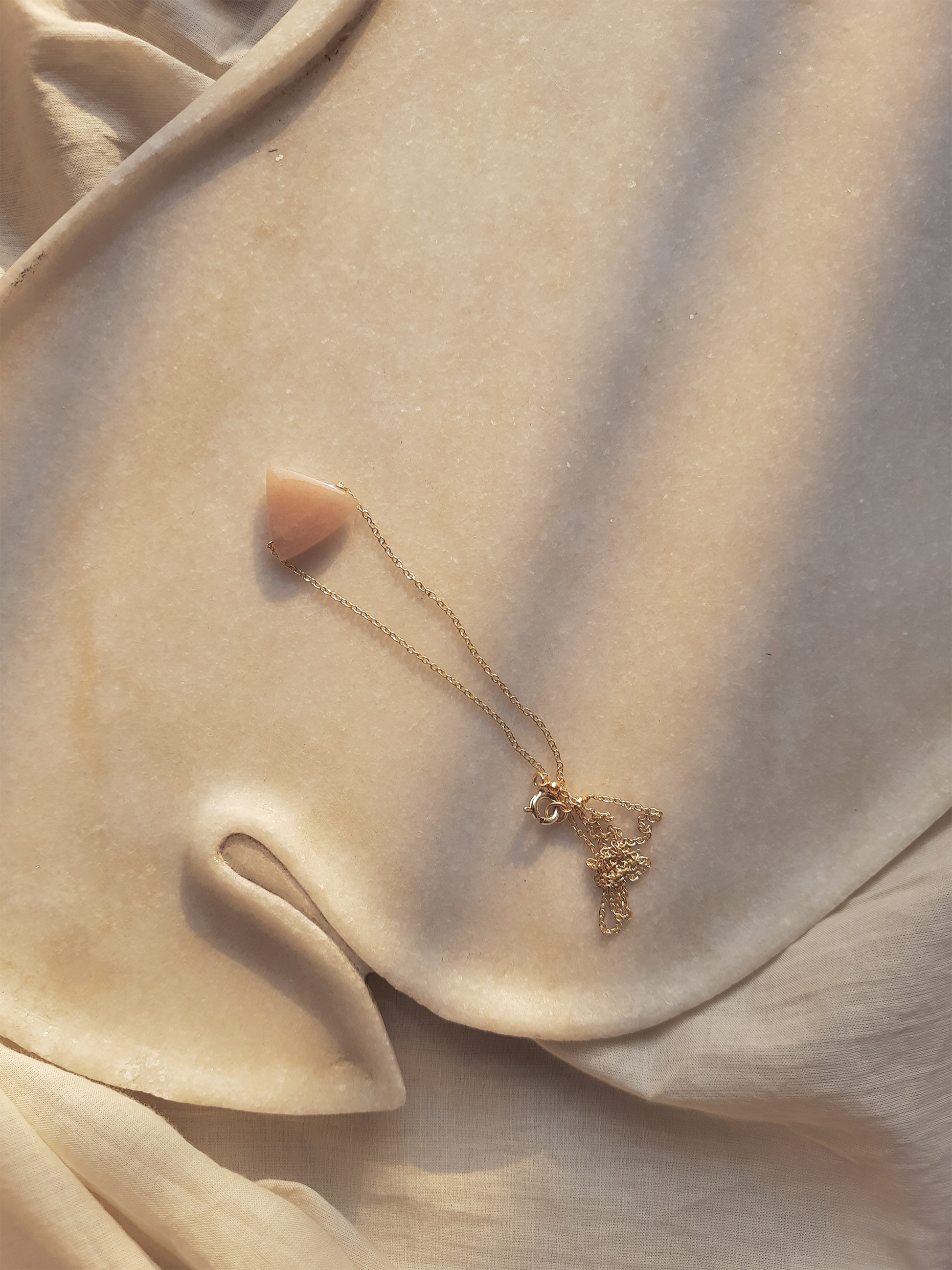 Peach moonstone Tikona Pendant with 14kt Gold Plated on Brass/Sterling Silver chain.