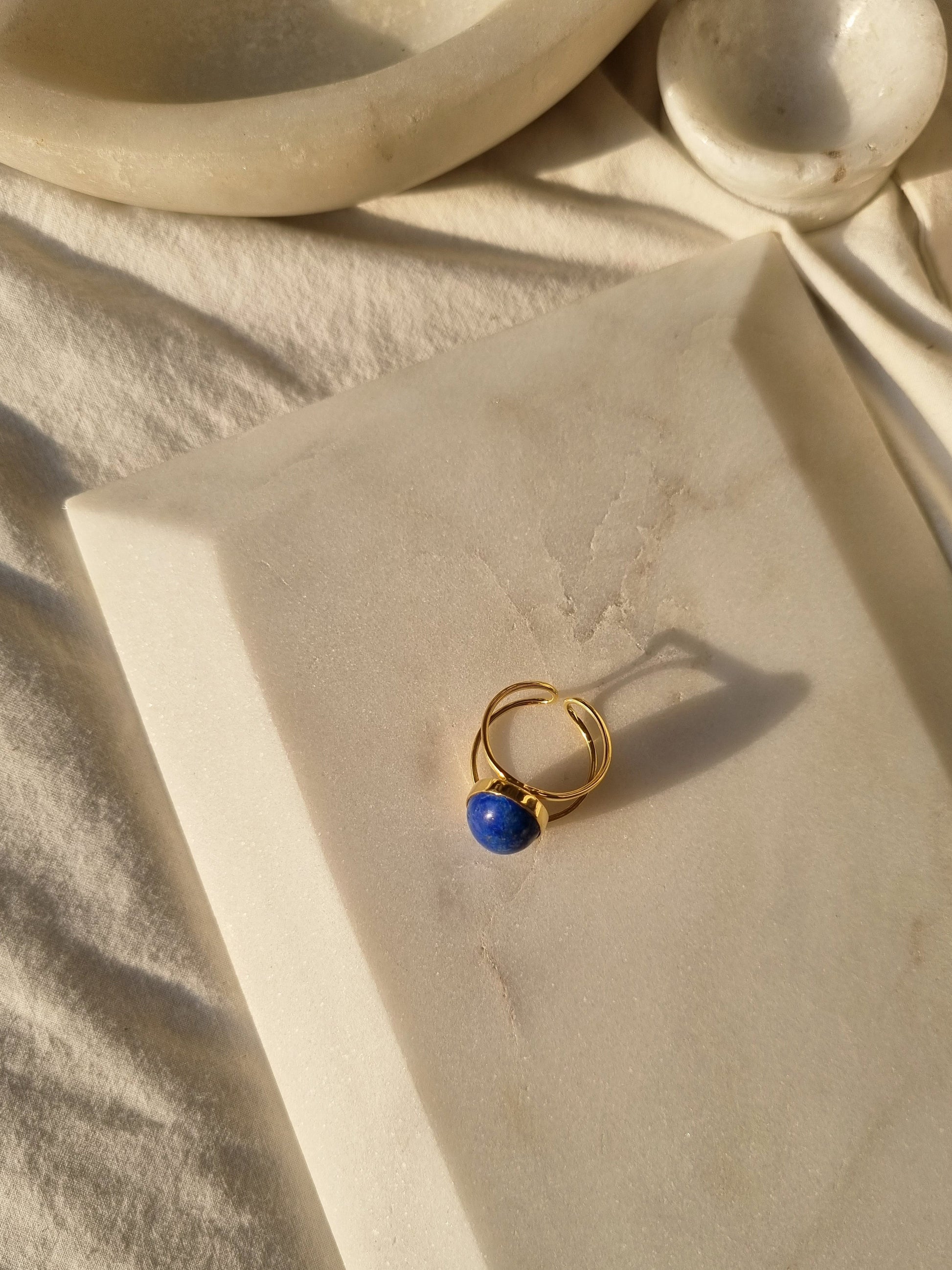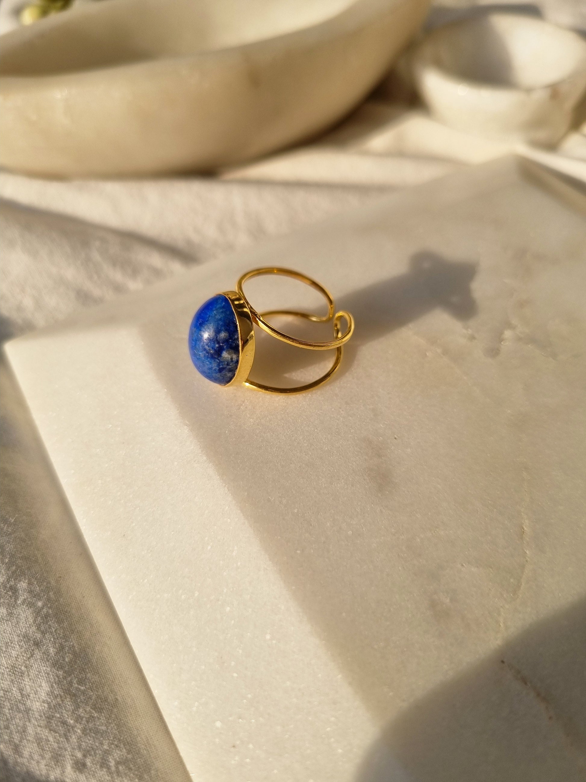 Lapis Lazuli adjustable Olivia Ring finished with 22KT Gold Plated Brass.