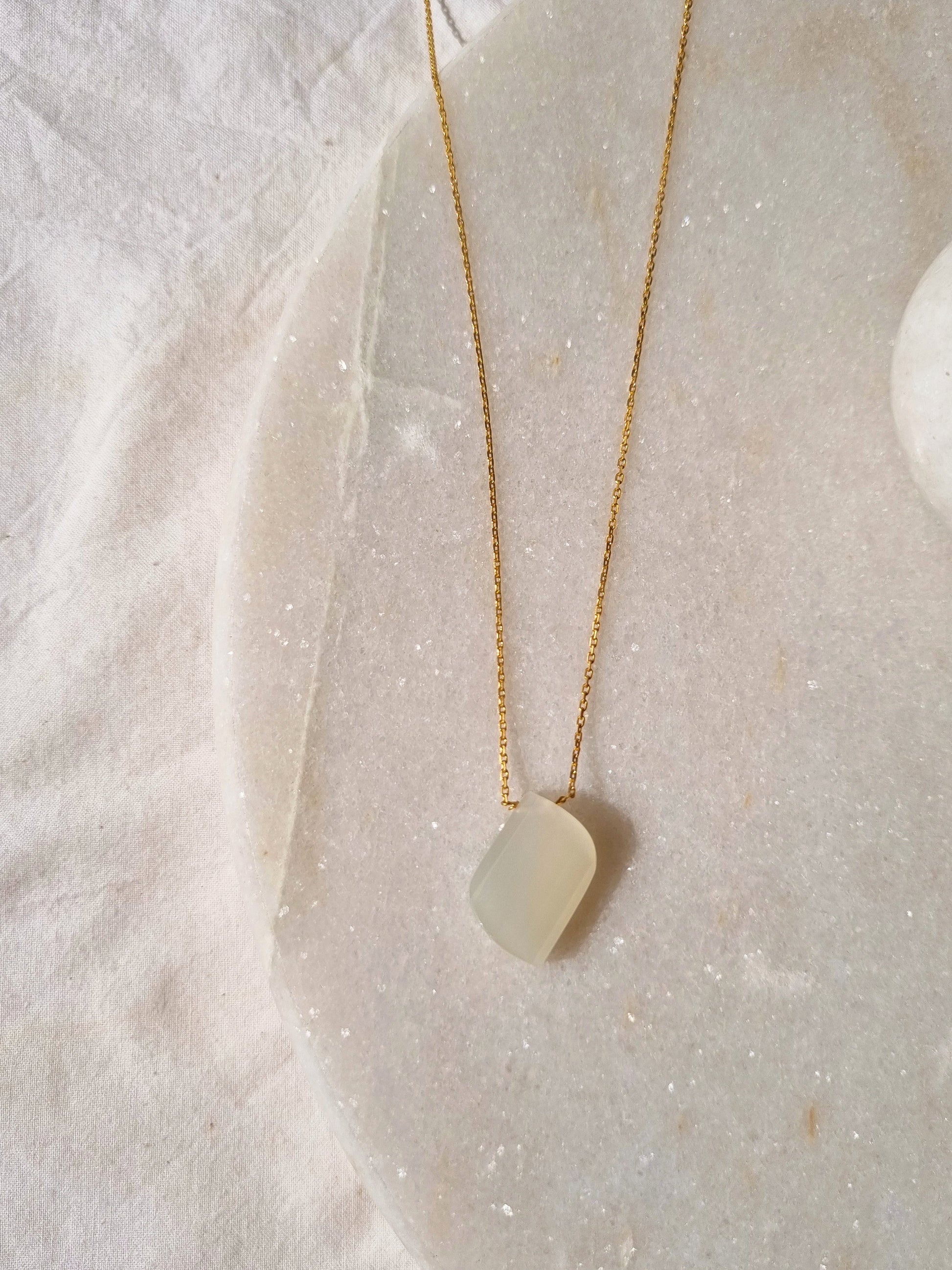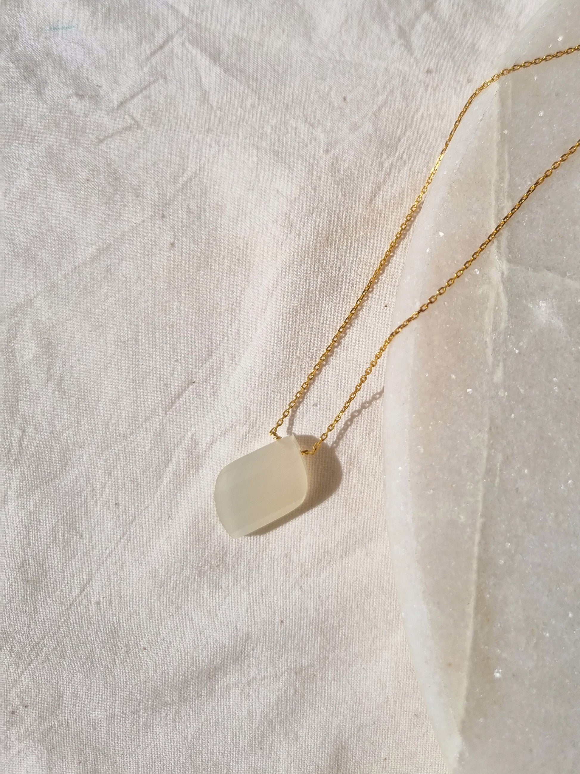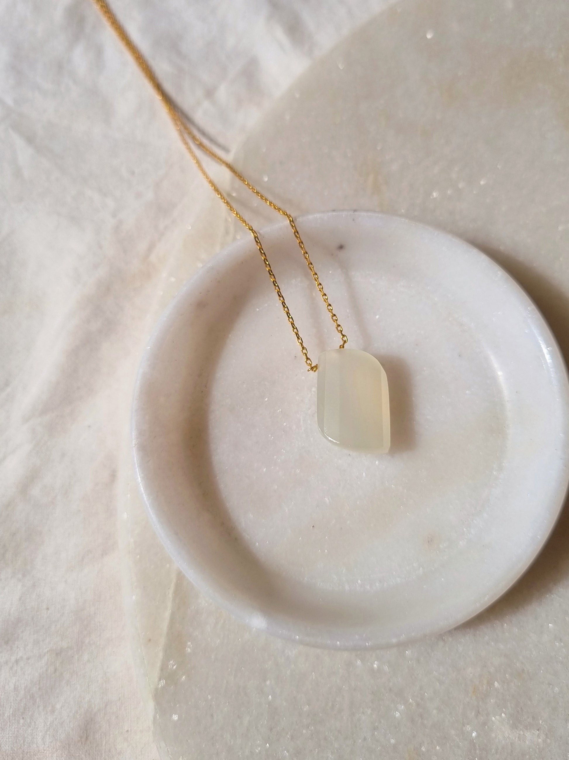 White Moonstone Pendant with 14kt Gold Plated on Brass/Sterling Silver chain.