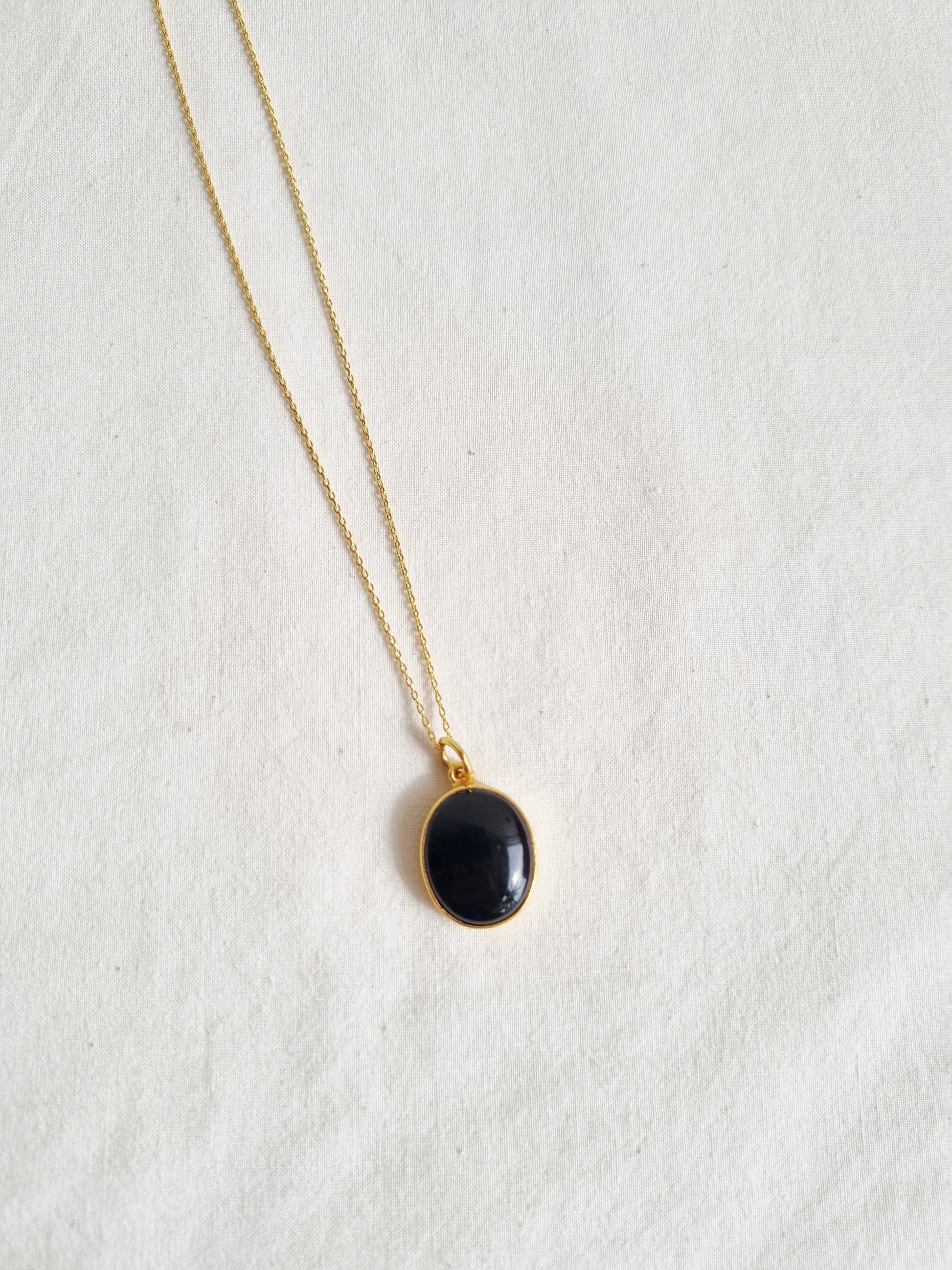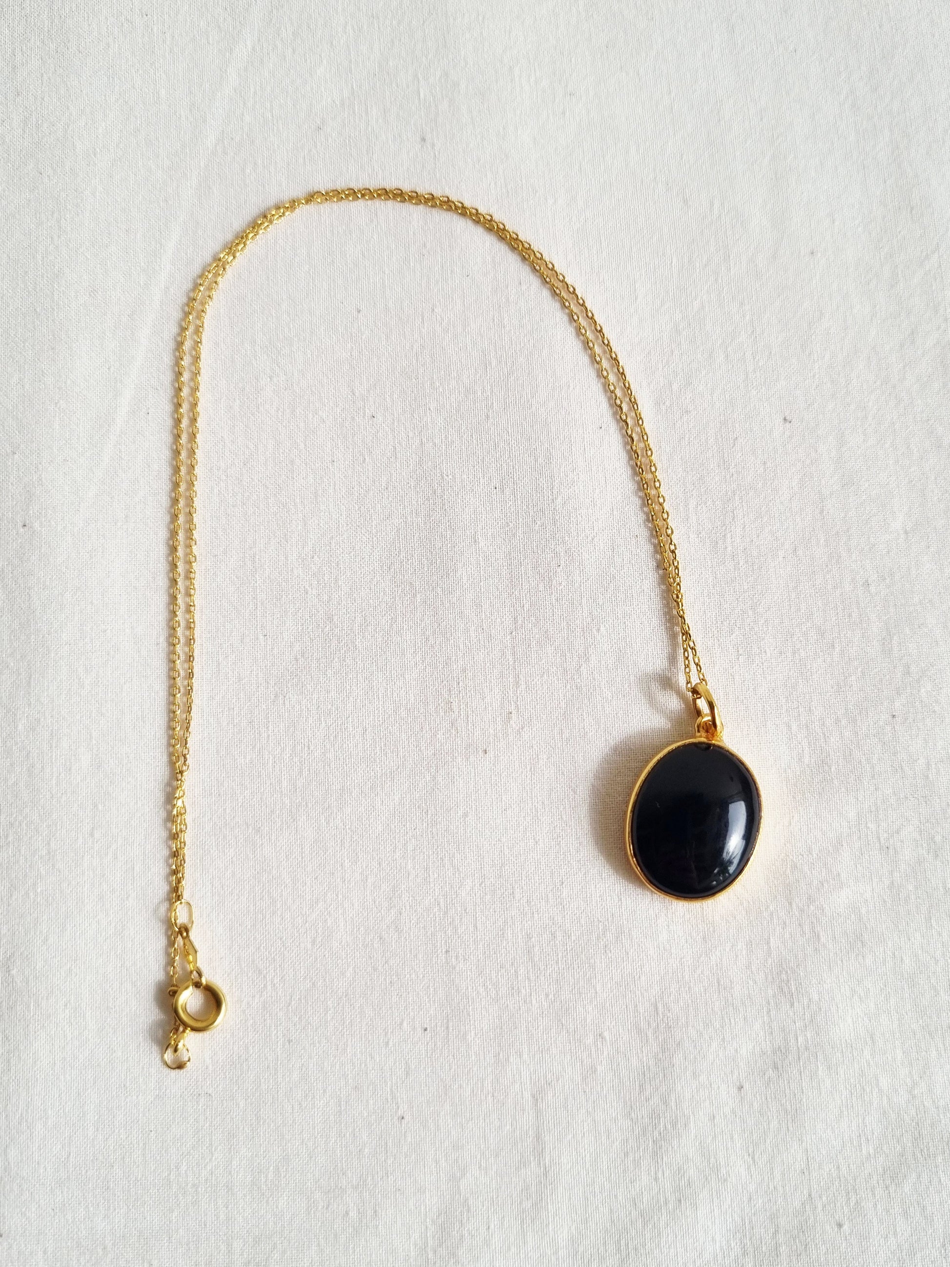Black Onyx Oval Pendant with 18KT Gold Plated Brass chain.