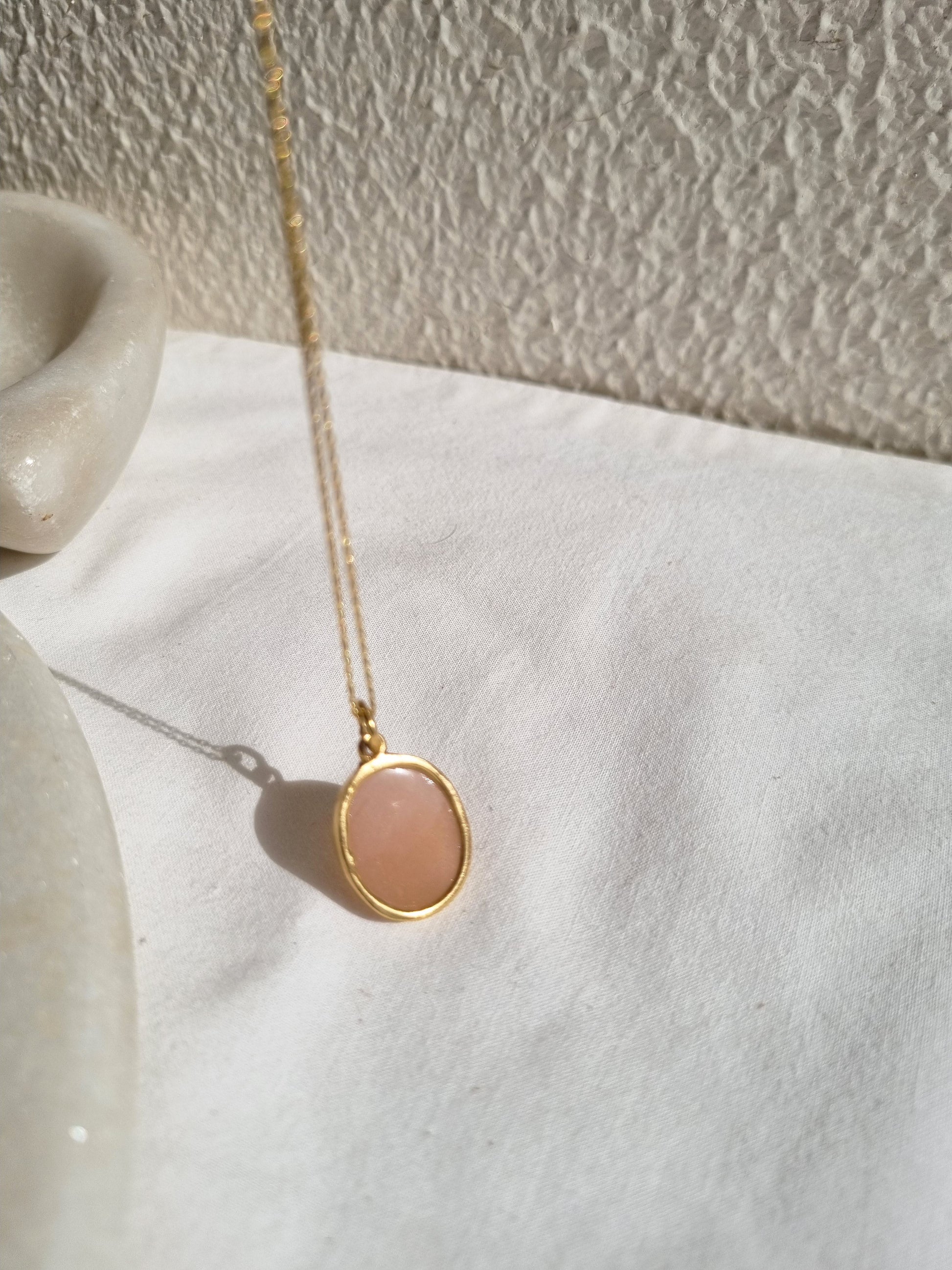 Peach Moonstone Oval Pendant with 14kt Gold Plated Brass chain.
