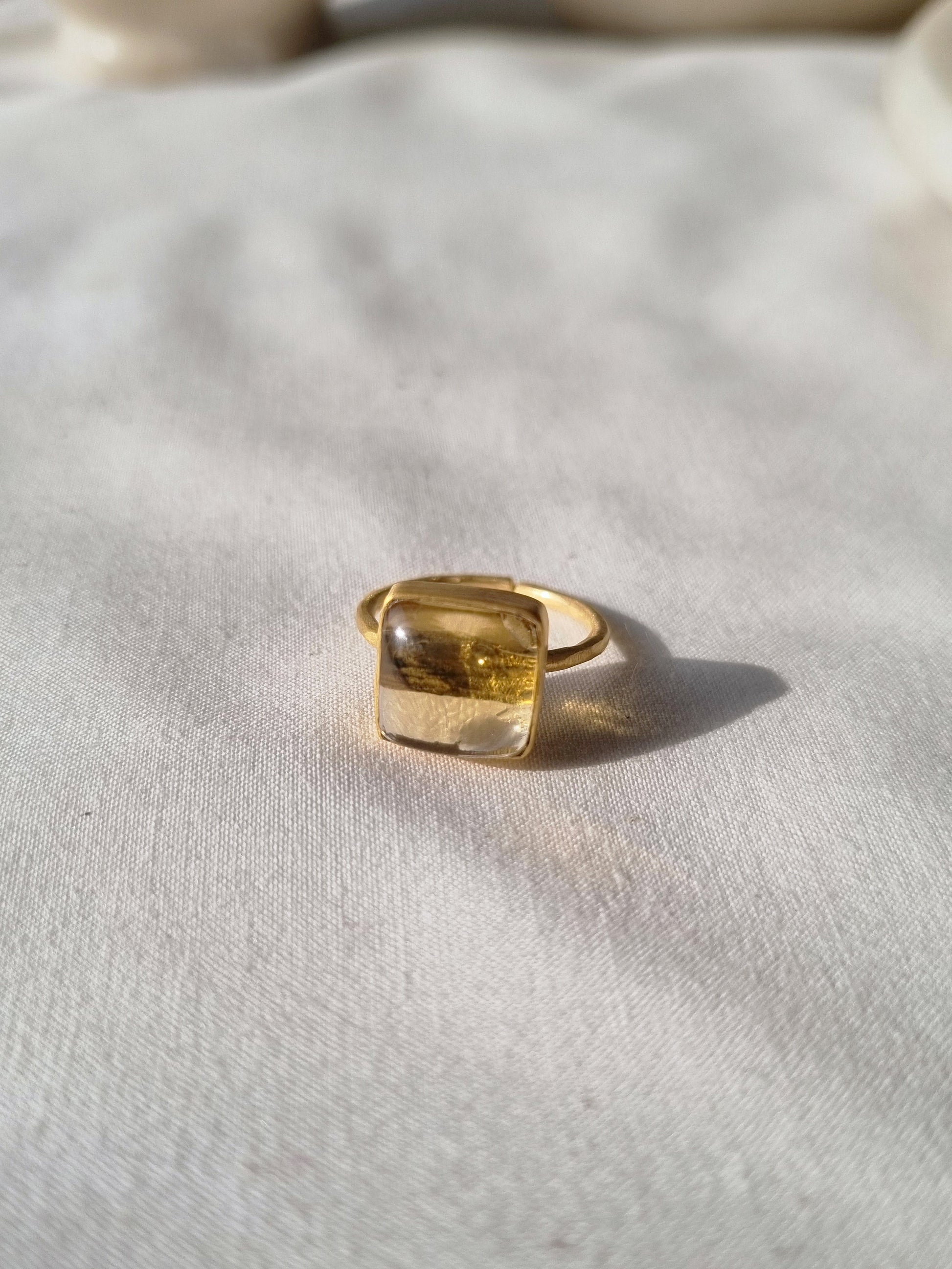 This crystal ring is made from fine quality Citrine gemstone, was hand carved in a square shape and finished using adjustable 22KT Gold plated brass.