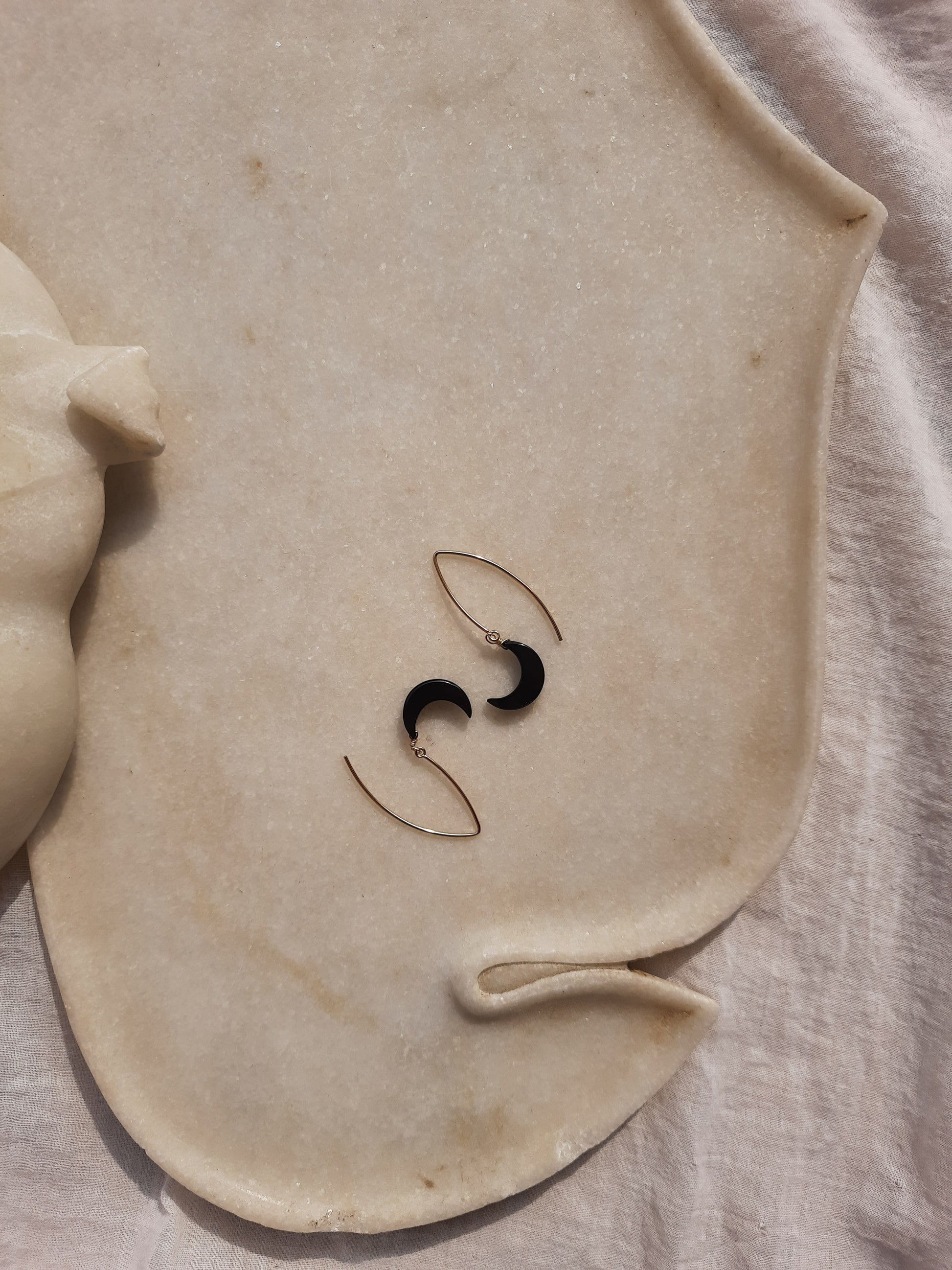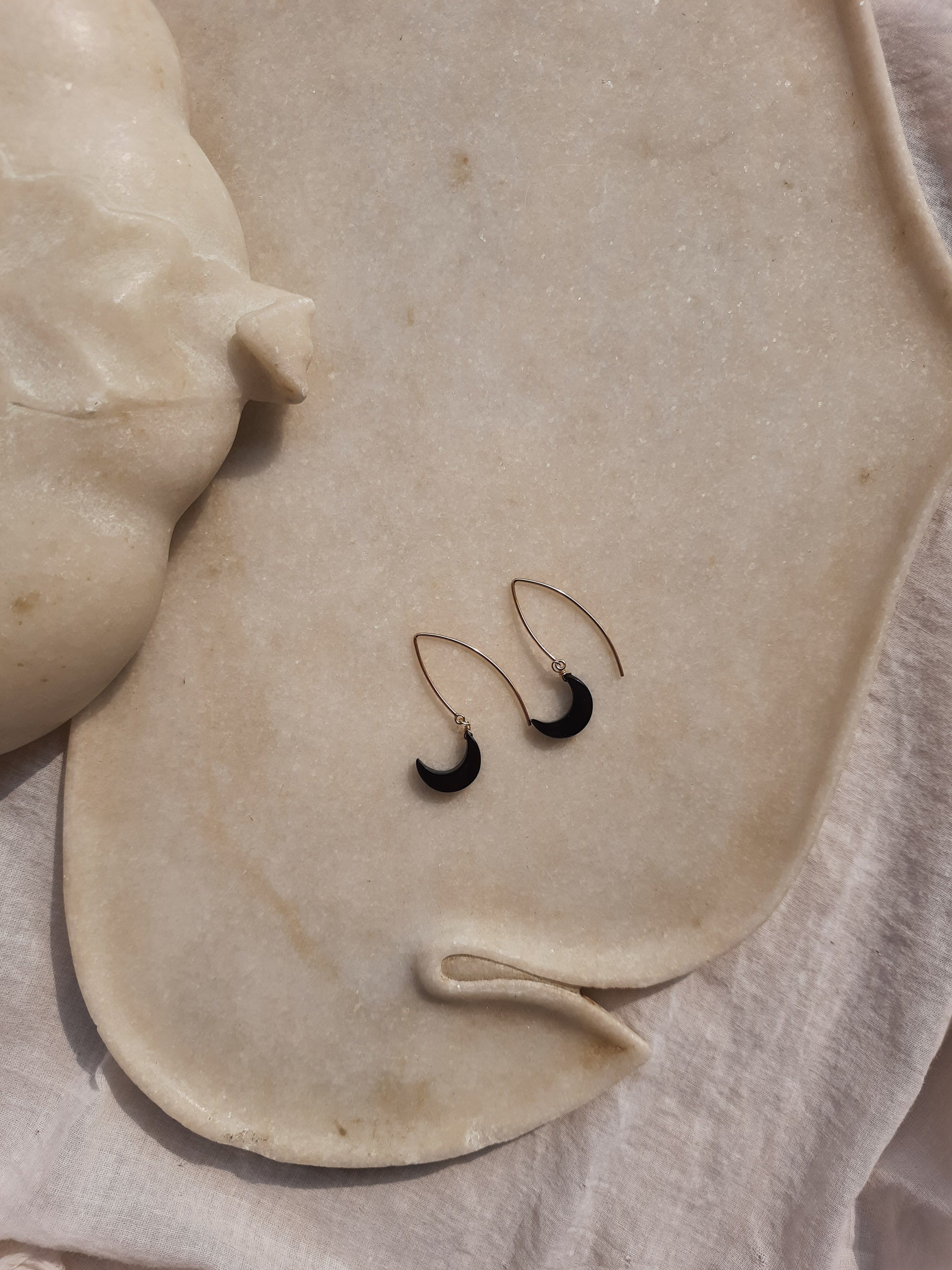 Black Onyx Luna Earrings with 14kt Gold plated on Brass Earwire.